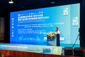 Professor Ziaul Haque Munim presented a plenary presentation on “Risk assessment of remote operation centre controlled maritime autonomous surface ship” and USN researcher Fang Zheng presented on “Maritime Transport and Policy Studies in the Past 50 years: A Review Across Four Maritime Journals”.